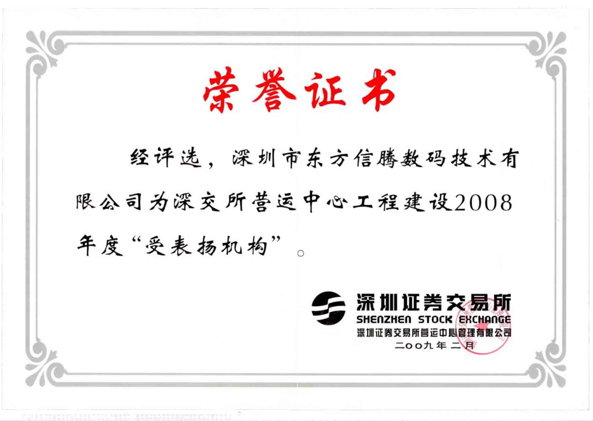 • 深交所營運中心工程建設2008 年度“受表揚機構 ”